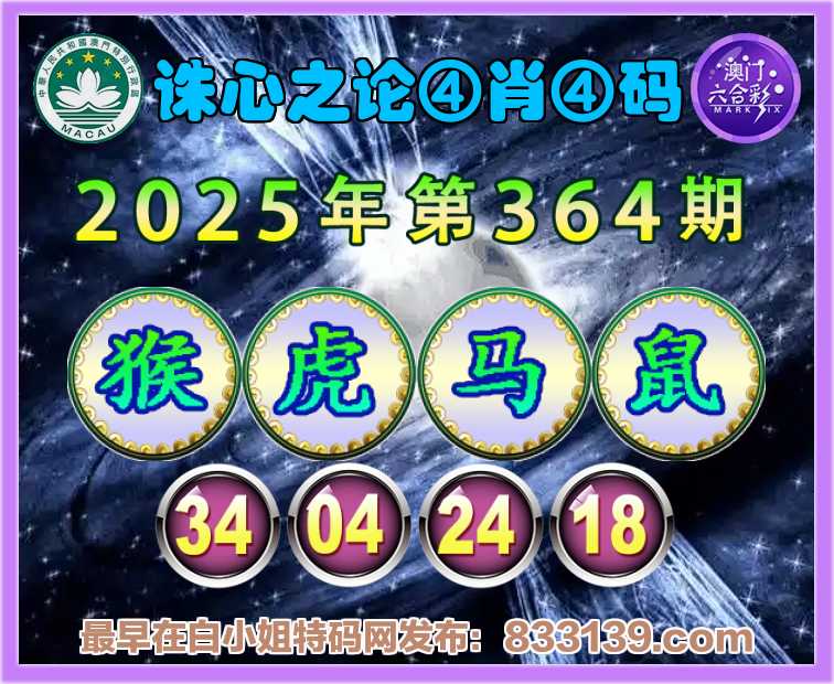 364期: 『诛心之论』 ④肖④码【猴虎鼠】【34.04.24.18】开:马12准上榜高手
